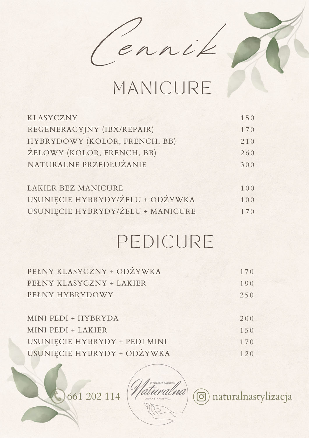 + pedicure mini. Zabieg obejmuje usunięcie hybrydy oraz skórek wokół paznokci stóp, nałożenie odżywki i delikatnego kremu na stopy. (40min)